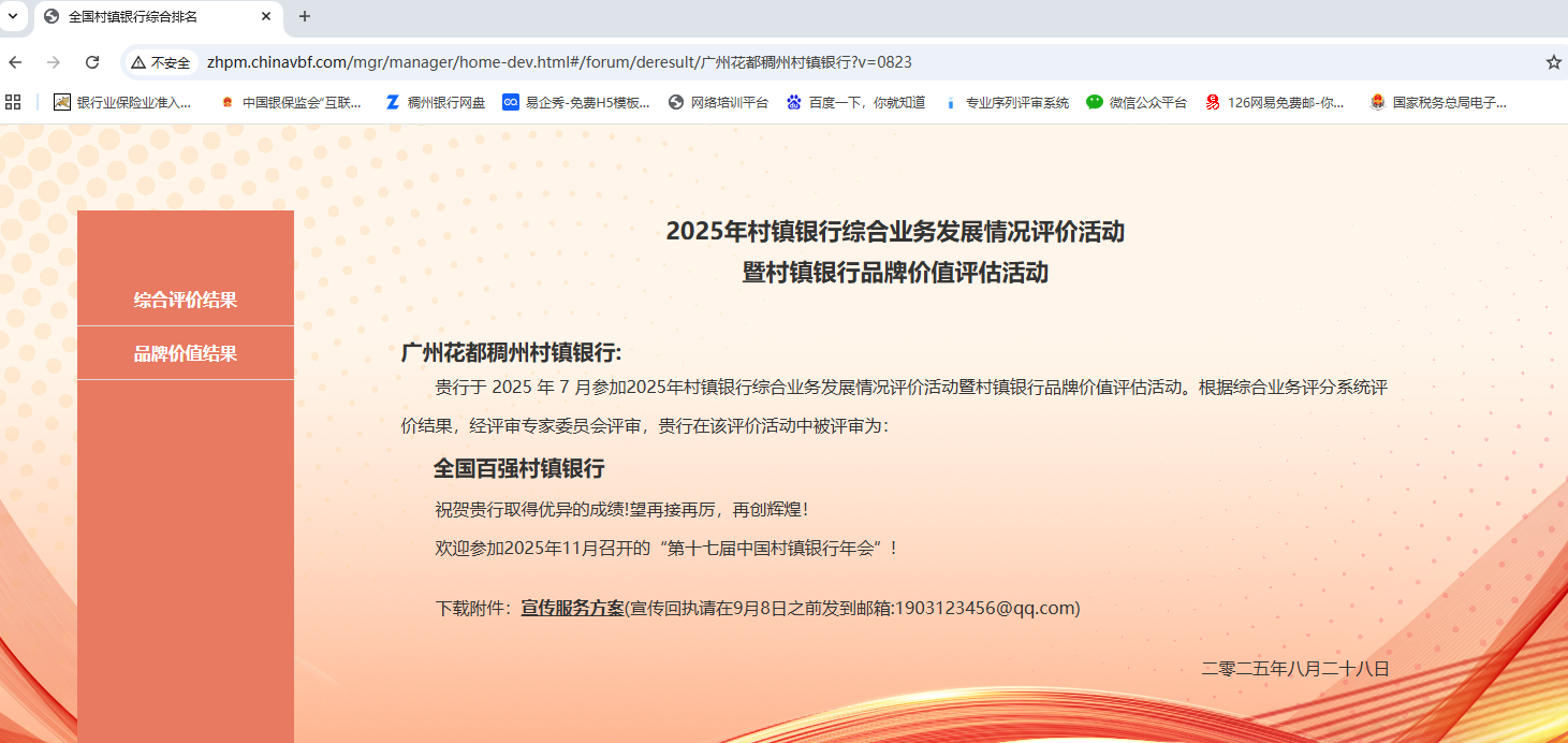 广州花都稠州村镇银行连续四年荣获“全国百强村镇银行”称号